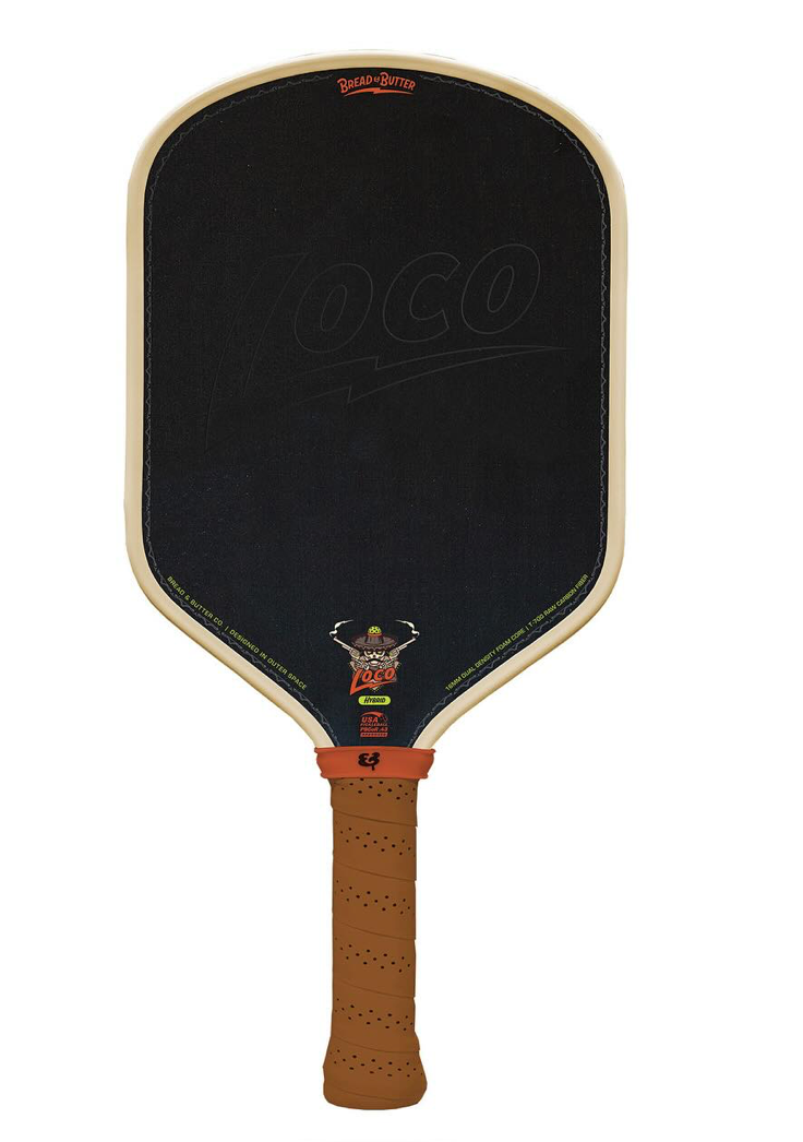 The "LOCO" is a high-performance thermoformed pickleball paddle that has been carefully crafted with the same raw T-700 carbon fiber face that is found in the best tech-focused paddles on the market. Our market research let us know that we need a hybrid shaped paddle for individuals who prefer lower swing weights, faster hand speed, or aren't acquainted with an elongated paddle. From this, we developed the Loco which features superior hand speed backed up by power and touch. With this paddle, players can be even more aggressive on the courts, thanks to its injected foam that runs around the edges and down through the handle. This foam not only adds stability and eliminates vibration but also greatly expands the sweet spot, leading to improved shot consistency no matter where you hit the ball. Overall, the "LOCO" paddle is a top-of-the-line option for any serious pickleball player looking to improve their game.