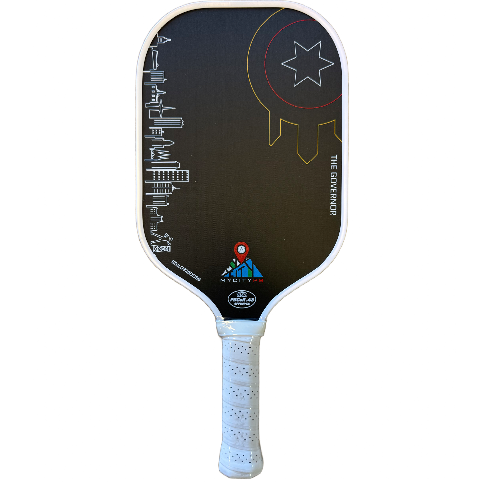 Command the court with The Governor — a power-packed paddle built with a 10mm honeycomb core, dual-edge foam, and a raw carbon fiber + fiberglass face for explosive drives and spin-loaded drops. With a 5.5” handle and static weight 8.3–8.5 oz, it’s crafted for confident, connected play.